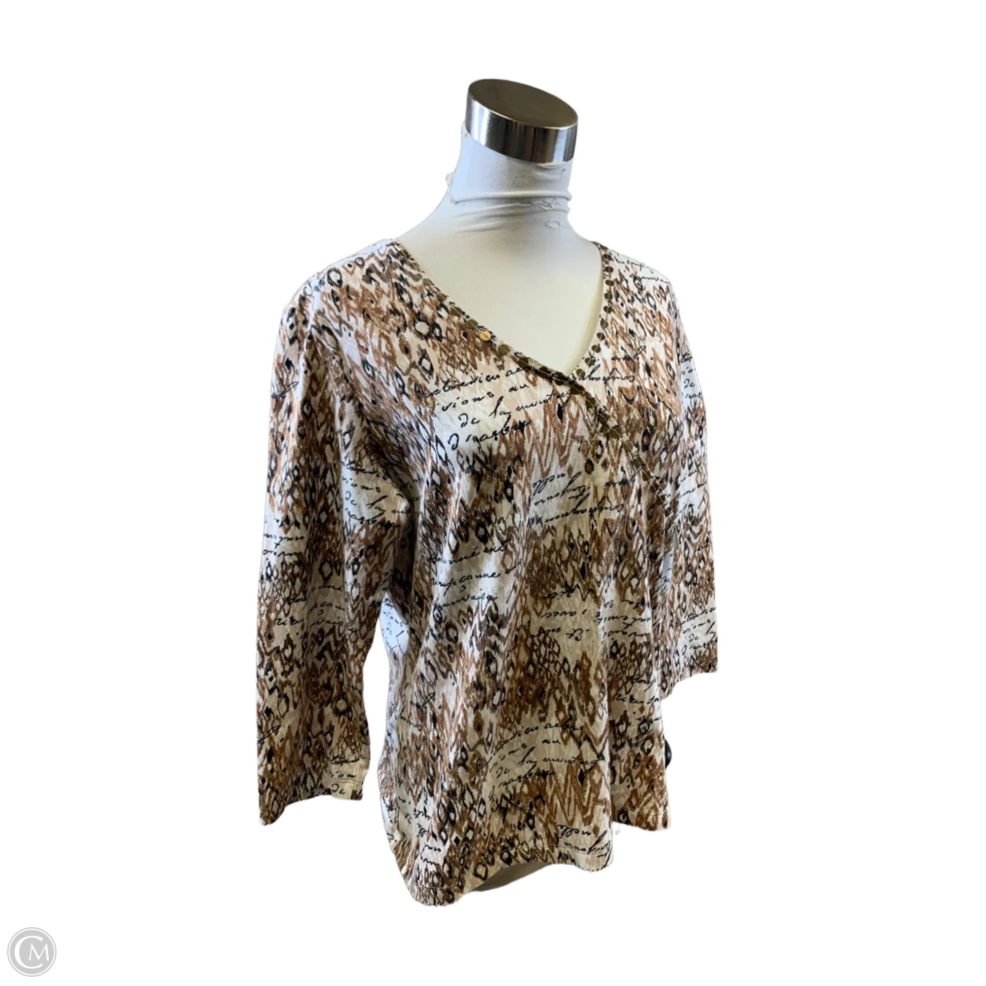 Top Long Sleeve By Ruby Rd In Brown & Cream, Size: L